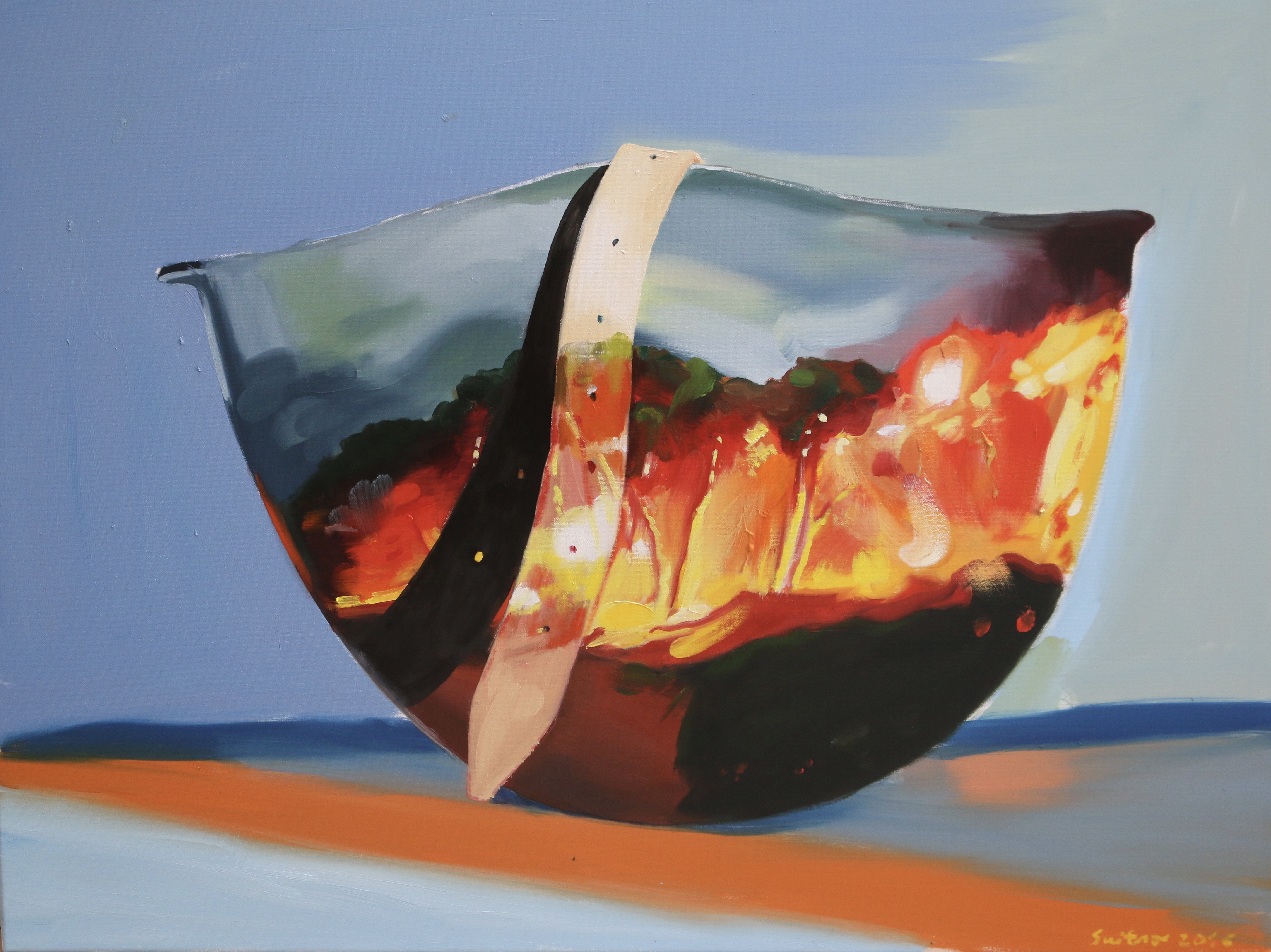 "HELMET WITH MINCED CHICKEN MEAT" oil on canvas